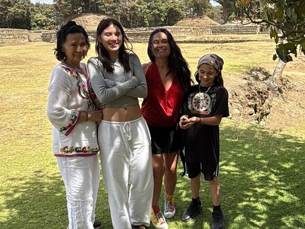 That’s me in the red blouse with my mom, Venus, and two of my kids—Daughter Nłchi, a high school lacrosse player, and Sun Tekiawi, a lacrosse youth player. My other two were off chasing adventure and soaking up some learning!